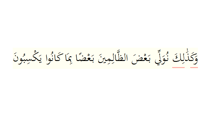 وَكَذَٰلِكَ نُوَلِّي بَعْضَ الظَّالِمِينَ بَعْضًا بِمَا كَانُوا يَكْسِبُونَ