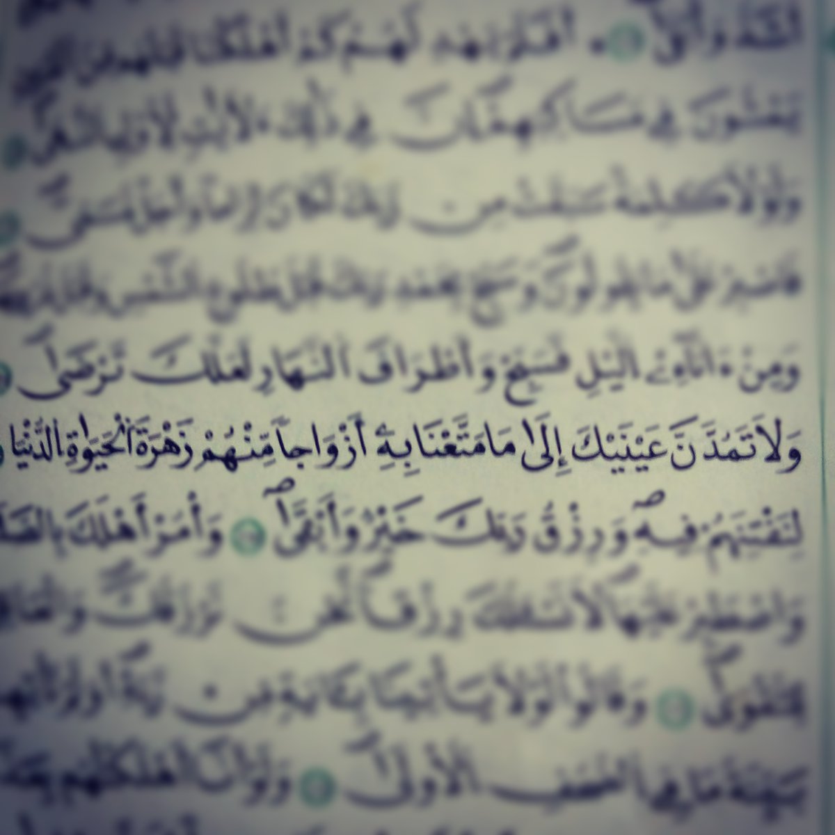 وَلَا تَمُدَّنَّ عَيْنَيْكَ إِلَىٰ مَا مَتَّعْنَا بِهِ أَزْوَاجًا مِّنْهُمْ زَهْرَةَ الْحَيَاةِ الدُّنْيَا لِنَفْتِنَهُمْ فِيهِ ۚ وَرِزْقُ رَبِّكَ خَيْرٌ وَأَبْقَىٰ