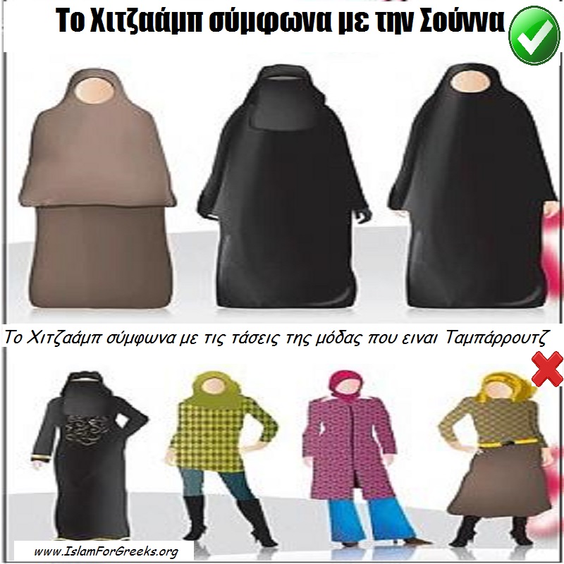 Παρακάτω ακολουθεί μια εικόνα η οποία μας βοηθάει να κατανοήσουμε το Ταμπάρρουτζ οπου δυστυχώς πολλές αδελφές μας το διαπράττουν, και με το Χιτζάμπ τους ακόμα:
