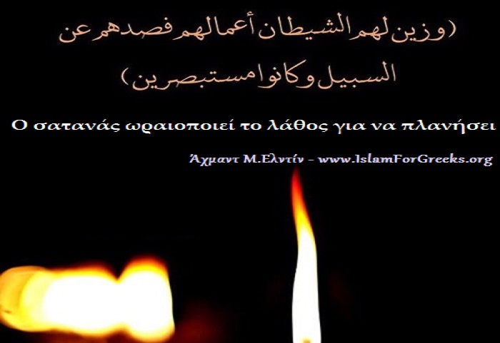 «Και ο σατανάς έκανε τις (παράνομες) πράξεις τους να φαίνονται καλές και γοητευτικές προς αυτούς και τους παραπλάνησε από το ορθό μονοπάτι, παρότι είχαν εξυπνάδα/αντίληψη» {Κοράνι 29:38}