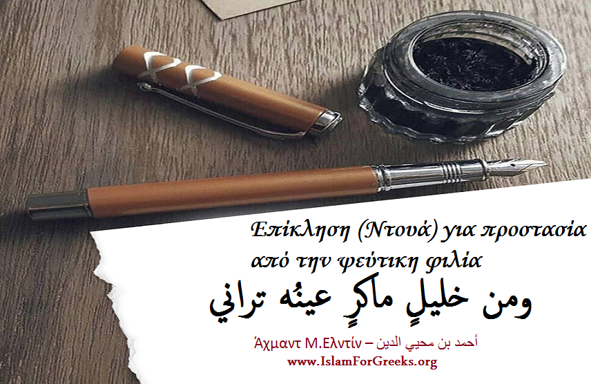 «Ω Αλλάχ, αναζητώ καταφύγιο σε εσένα από έναν κακό γείτονα. Και από μια σύζυγο που με κάνει να γερνώ πριν τα γηρατειά μου. Και από έναν υιό που θα γίνει αφέντης μου. Και από έναν πλούτο που θα γίνει η τιμωρία μου. Και από έναν πονηρό φίλο οπου τα μάτια του με κοιτούν (με κακία) και η καρδιά του σχεδιάζει και συνωμοτεί εναντίον μου. Όταν βλέπει κάτι καλό πάνω μου το θάβει και όταν δει κάτι κακό το διαδίδει»