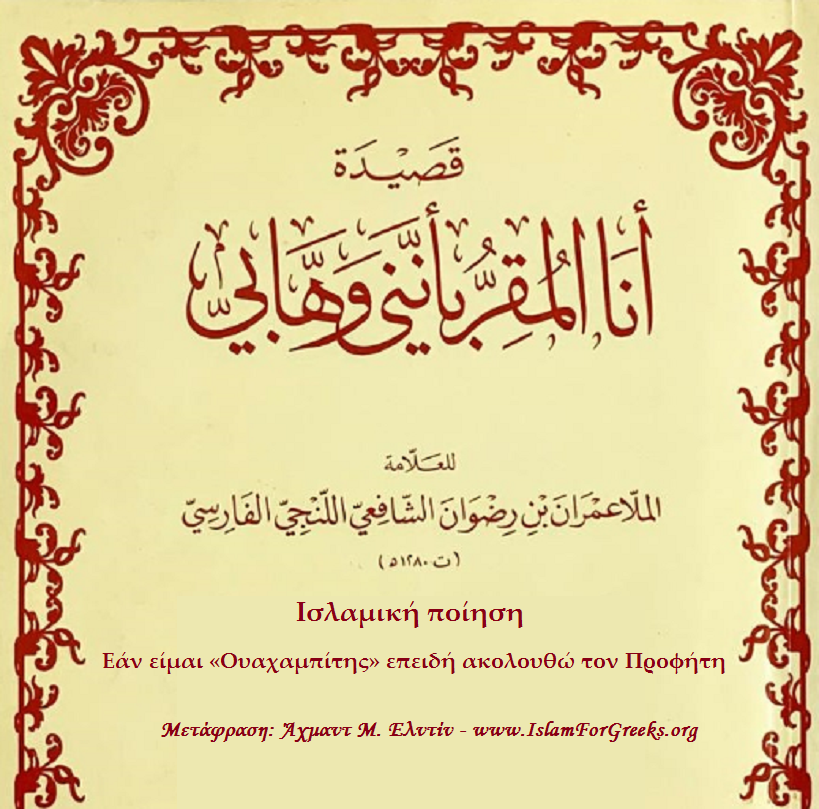 Ένα απόσπασμα από το Ισλαμικό ποίημα του Σέηχ Ιμράν Ίμπν Ριντουάν «Εάν επειδή ακολουθώ τον Άχμαντ (τον Προφήτη Μουχάμαντ صلى الله عليه وسلم), σημαίνει ότι είμαι «Ουαχαμπίτης», τότε διακηρύττω ότι είμαι «Ουαχαμπίτης».