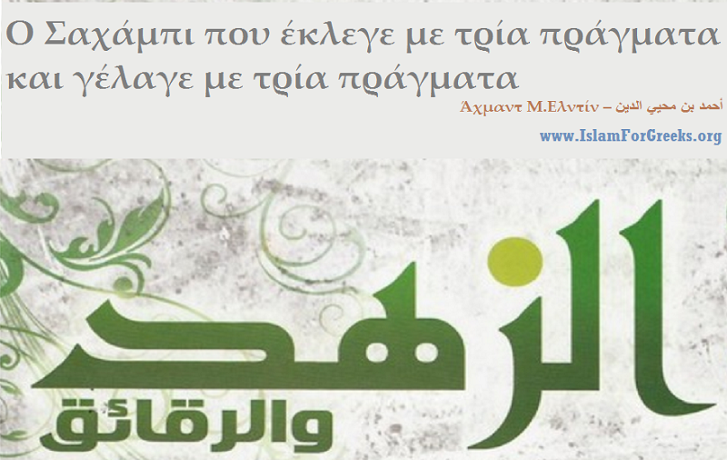 «Τρία πράγματα με κάνουν να γελώ και τρία να κλαίω. Αυτά που με κάνουν και γελώ είναι αυτοί που βάζουν όλες τις ελπίδες τους σε αυτήν εδώ την ζωή όταν ο θάνατος τους καταδιώκει (δηλαδή μια μέρα θα πεθάνουν), αυτοί που είναι απρόσεκτοι (στις υποχρεώσεις) απέναντι στον Αλλάχ όταν ο Αλλάχ είναι πολύ προσεκτικός απέναντι τους, και αυτοί που γελούν συχνά όταν δεν γνωρίζουν αν έχουν ευχαριστήσει τον Αλλάχ η τον έχουν εξοργίσει. Αυτά που με κάνουν και κλαίω είναι όταν αποχωρίζομαι τον αγαπητό μου Μουχάμαντ (صلى الله عليه و سلم) και την ομάδα του (τους Σαχάμπα), η φρίκη της ώρας του θανάτου, και όταν θα σταθώ μπροστά στον Αλλάχ τον Ύψιστο στην Ημέρα που όλα τα μυστικά θα αποκαλυφθούν μη γνωρίζοντας αν θα καταλήξω στον Παράδεισο η στην Κόλαση.»