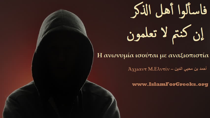 Προσοχή στους διαδικτυακούς συγγραφείς που γράφουν ανώνυμα και ανυπόγραφα με την δήθεν δικαιολογία της ταπεινότητας και ότι «δεν θέλουν να φανεί» η «καλή» τους πράξη. Η ανωνυμία ισούται με αναξιοπιστία. Ένα κείμενο που δεν υπογράφεται και δεν αναφέρεται το ονοματεπώνυμο του αρθρογράφου, του μεταφραστή, των πηγών (με λεπτομέρεια), τότε δεν μπορεί να είναι άξιο εμπιστοσύνης. Η θρησκεία μας δεν είναι ασήμαντη έτσι ώστε να την λαμβάνουμε από ανυπόγραφα και ανώνυμα κείμενα, από «αόρατα» άτομα που δεν μπορούμε να εξακριβώσουμε το ποιοι είναι και που ανήκουν (μεθοδολογικά, δογματικά και θεολογικά). Προσοχή λοιπόν, είθε ο Αλλάχ να μας προστατεύει από τους λύκους που κινούνται στα σκοτάδια, μιας και είναι αλλεργικοί στο φως και στη διαφάνεια.