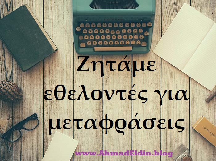 Ζητάμε εθελοντές για μεταφράσεις των εκπομπών του Eldin’s Journal και της αρθρογραφίας του ιστολογίου www.AhmadEldin.blog από αγγλικά σε ελληνικά και από ελληνικά σε αγγλικά. Όποιος ενδιαφέρεται να συμμετέχει στις προσπάθειες παρακαλώ να στείλετε μήνυμα στη παρακάτω πλατφόρμα: