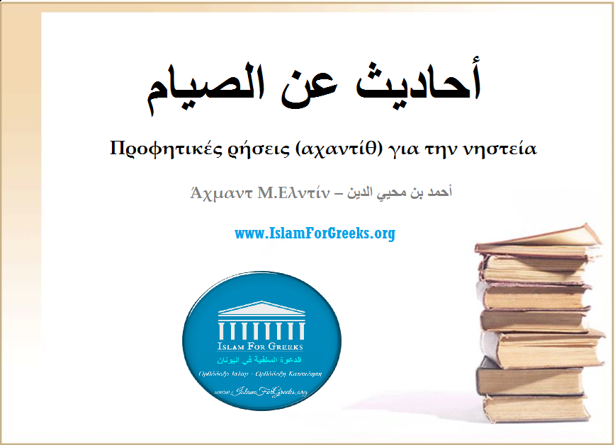 Το Ραμαζάνι του 2012 ολοκλήρωσα μια σειρά από παραδόσεις με τίτλο «Προφητικές ρήσεις για την Νηστεία» στο Τζαμί μας Σάλαφ ους Σάλιχ (Αρ Ραχμάν). Ακολουθούν έξι ολιγόλεπτες ηχητικές παραδόσεις που καταπιάνονται με τα βασικά αχαντίθ του Προφήτη μας صلى الله عليه وسلم για την νηστεία.