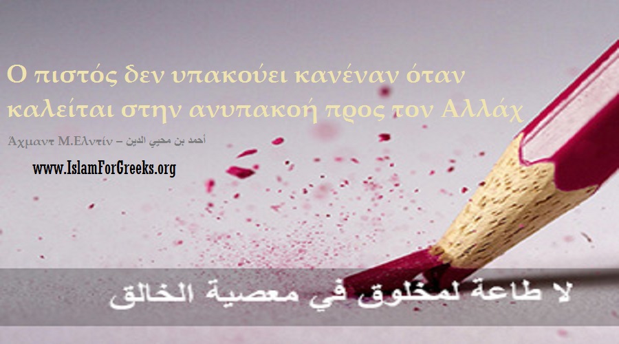«Δεν υπάρχει υπακοή σε κανένα πλάσμα όταν υπάρχει ανυπακοή στον Δημιουργό» {Άχμαντ, Μούσναντ, 4/432}