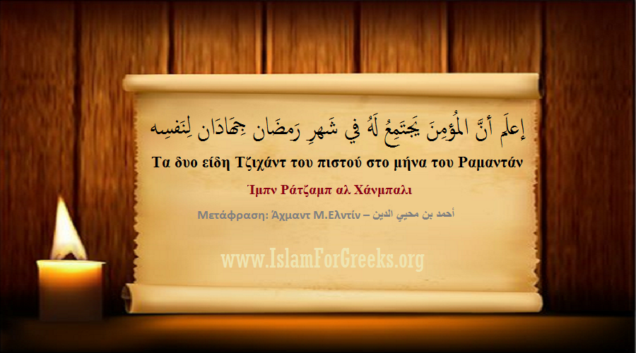 «Να γνωρίζεις, ότι υπάρχουν δυο είδη Τζιχάντ που ισχύουν για τον πιστό στον μήνα του Ραμαντάν.