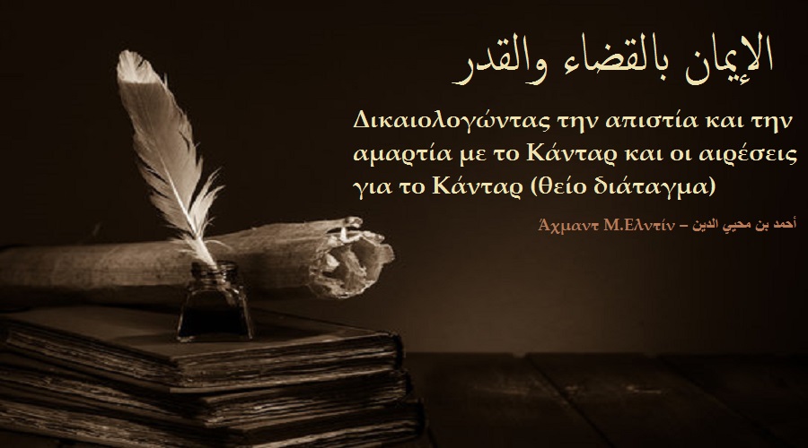 Απάντηση σε αυτούς που δικαιολογούν την απιστία και την αμαρτία με το Κάνταρ (Θείο διάταγμα). Από το 15ο μάθημα για τον κύκλο παραδόσεων: Το Χαντίθ του αγγέλου Γαβριήλ – شرح حديث جبريل في تعليم الدين ـ العلامة عبد المحسن العباد . Μπορείτε να δείτε ολόκληρο τον κύκλο εδώ.