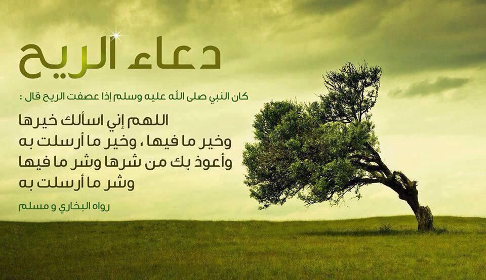 «Ω Αλλάχ, σου ζητώ το καλό του (ανέμου), το καλό που περιέχει και το καλό με το οποίο έχει σταλεί. Και ζητώ προστασία σε εσένα από το κακό του, το κακό που περιέχει και το κακό με το οποίο έχει σταλεί» {Μούσλιμ νο.899, Άμπου Νταούντ νο.2160}