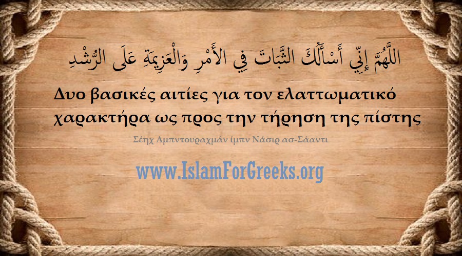 “Ο λόγος που ένα άτομο βιώνει ανεπάρκεια και ελαττώματα (ως προς την τήρηση της πίστης και της αλήθειας) είναι εξαιτίας δυο καταστάσεων: