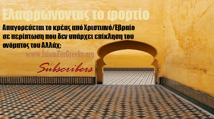 Η νέα σειρά «Ελαφρώνοντας το φορτίο» για το συνδρομητικό περιεχόμενο έρχεται για να διευκολύνει τους νέους Μουσουλμάνους στην Ελλάδα να ξεπεράσουν ορισμένες υπερβολικές απόψεις και θέσεις που μπορεί να έχουν για την θρησκεία, ελαφρώνοντας με αυτόν τον τρόπο ένα βαρύ φορτίο από «υποχρεώσεις» οι οποίες στην πραγματικότητα δεν σχετίζονται με την πίστη και τις πρακτικές του Ισλάμ. Σε αυτό το βίντεο καταπιανόμαστε με το χαλάλ κρέας και κατά πόσο ισχύει η υπερβολική απαγόρευση που λέει ότι «δεν επιτρέπεται να καταναλώσεις το κρέας από Χριστιανό και Εβραίο παρά μόνο αν έχει επικαλεστεί τον Αλλάχ κατά την σφαγή».