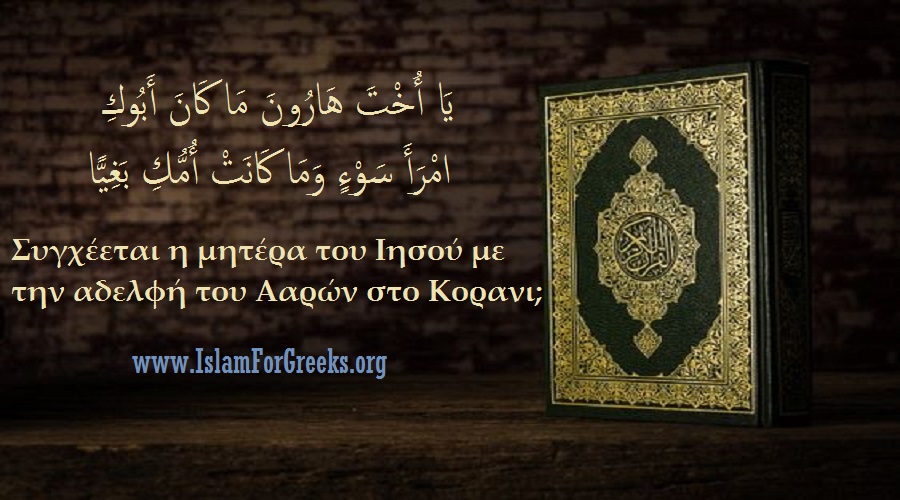 «”Ω αδελφή του Ααρών! Ο πατέρας σου δεν ήταν ένας άνδρας του πονηρού, κι ούτε η μητέρα σου μια γυναίκα ακόλαστη”» {Κοράνι 19:28}