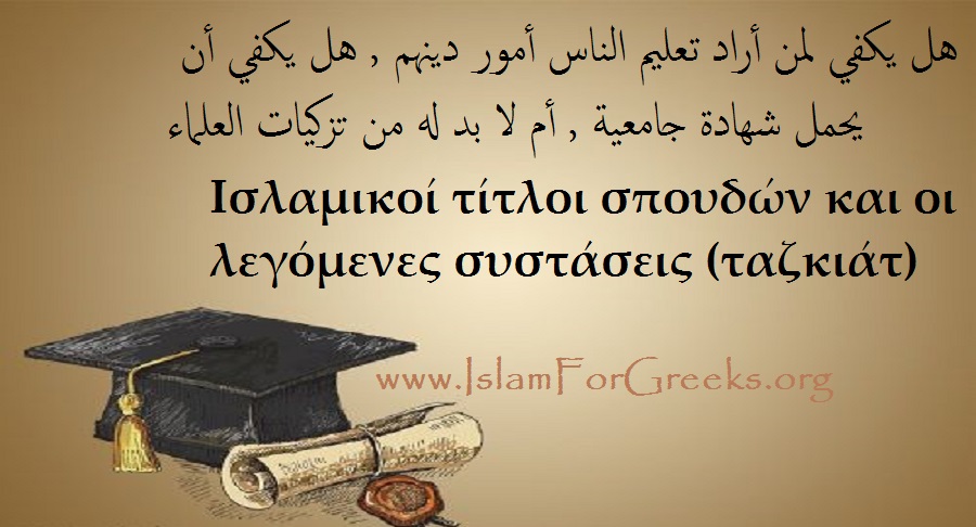 Τα διπλώματα, οι τίτλοι σπουδών όπως και οι συστάσεις (ταζκιάτ) σε καμία περίπτωση δεν επιβεβαιώνουν την γνώση ενός ατόμου για την θρησκεία. Για την ακρίβεια, πόσοι και πόσοι οπαδοί αίρεσης, απιστίας και πλάνης έχουν συστάσεις (ταζκιάτ), απολυτήρια μεγάλων πανεπιστημίων και αμέτρητες περγαμηνές και όταν τους ακούς να μιλάνε για την ακίντα (δόγμα), το μάνχατζ (μεθοδολογία), το φίκχ (νομολογία), τα ουσούλ (βασικές αρχές), επιδεικνύουν την αδαημοσύνη τους;