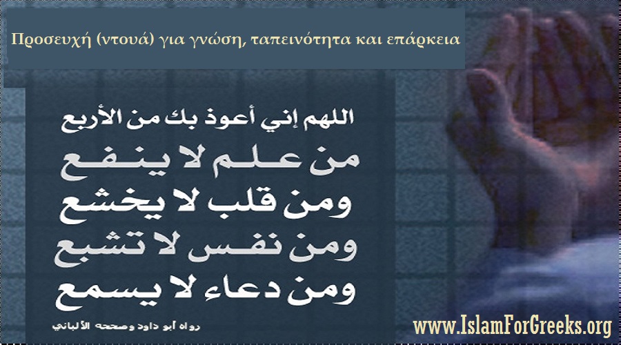 «Ω Αλλάχ, ζητώ προστασία σε Εσένα από την γνώση αυτή που δεν ωφελεί, από μια καρδιά που δεν είναι ταπεινή, από μια ψυχή που δεν ευχαριστιέται και από μια ντουά (επίκληση) που δεν απαντιέται.»