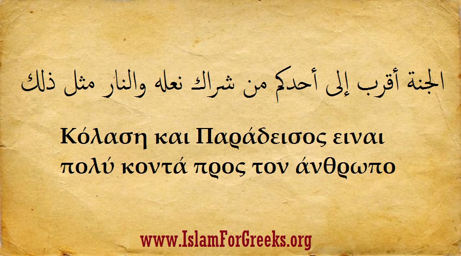 «Ο παράδεισος είναι τόσο κοντά σας όπως το δερμάτινο λουρί του παπουτσιού σας, το ίδιο και η κόλαση» {Μπουχάρι, νο. 6448}