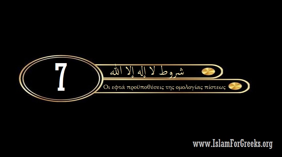 7) Είναι η αποδοχή της ομολογίας αυτής που γίνεται εκούσια. Και στην καρδιά (πίστη) και με πράξεις. Ολοκληρωτική αποδοχή της αποκάλυψης του Αλλάχ του Ύψιστου και της διδασκαλίας του Προφήτη του. Αυτό σημαίνει επίσης ότι κάνουμε στην άκρη τις επιθυμίες σας και τις γνώμες έχοντας σε προτεραιότητα το κείμενο της αποκάλυψης οπου έχει και τον πρώτο λόγο στη ζωή μας.