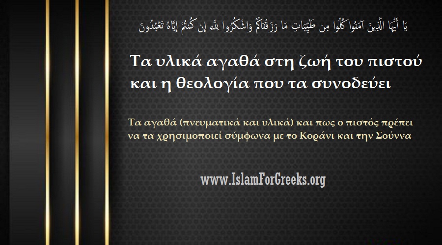 Στο ηχητικό που ακολουθεί αναλύουμε τα αγαθά (πνευματικά και υλικά) και πως ο πιστός πρέπει να τα χρησιμοποιεί σύμφωνα με το Κοράνι και την Σούννα.