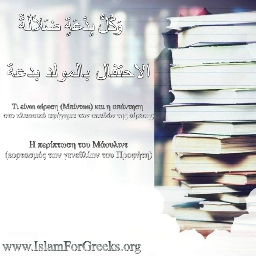 Απάντηση στους οπαδούς της μπίνταα (αιρέσεων) που εκλογικεύουν την αίρεση και την κατηγοριοποιούν σε καλή μορφή και κακή μορφή. Αναλύεται και το ζήτημα του Μάουλιντ, ο εορτασμός των γενεθλίων του Προφήτη صلى الله عليه و سلم