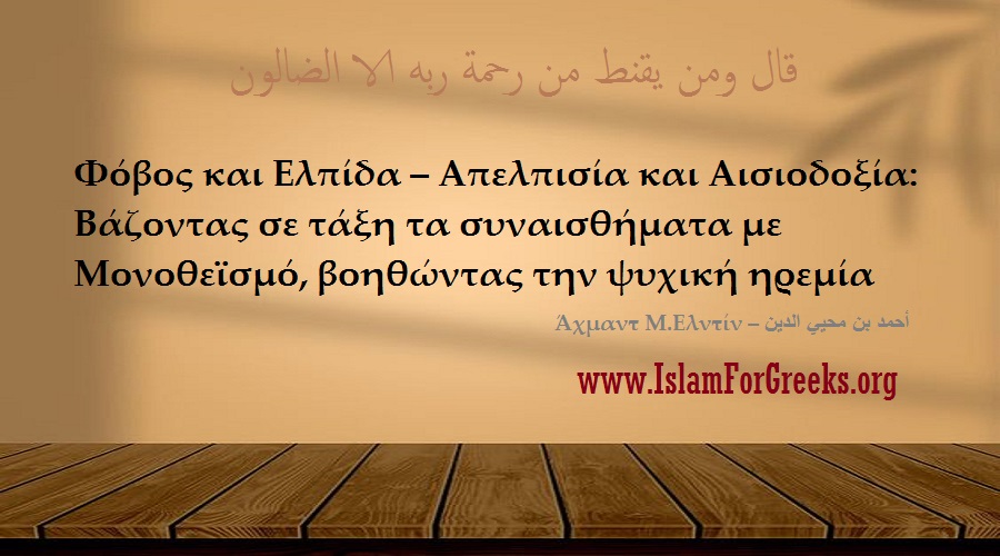 Πως το Ταουχίντ (Μονοθεϊσμός) βοηθά τον άνθρωπο να είναι μετριοπαθής και ασφαλίζει την ψυχική του ηρεμία. Πως διαχειριζεται ο πιστός τον φόβο, την ελπίδα, την αισιοδοξία και πως αντιμετωπίζει την απελπισία