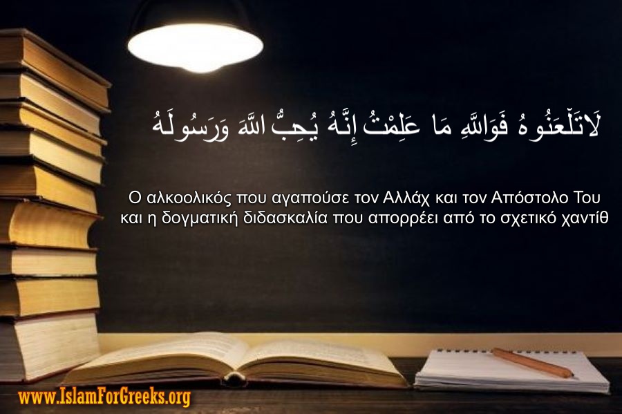 “Την εποχή του Προφήτη صلى الله عليه وسلم υπήρχε ένας άνδρας με το όνομα Αμπντάλλαχ με παρατσούκλι «ο γάιδαρος» και ήταν ένα άτομο που έκανε τον Προφήτη να γελάει (με αστεία). Ο Προφήτης τον είχε μαστιγώσει για κατανάλωση αλκοόλ. Μια ημέρα συνελήφθη (πάλι) για κατανάλωση αλκοόλ και ο Προφήτης διέταξε και πάλι το μαστίγωμα του. Κάποιος, ανάμεσα στο πλήθος, που ήταν μάρτυρας της τιμωρίας, είπε: «Είθε ο Αλλάχ να τον καταραστεί, πόσες και πόσες φορές έχει έρθει (πιαστεί για κατανάλωση αλκοόλ με αποτέλεσμα να τιμωρηθεί). Ο Προφήτης صلى الله عليه وسلم γύρισε και του είπε: Μην τον καταριέσαι, ορκίζομαι στον Αλλάχ, γνωρίζω καλά ότι αγαπάει τον Αλλάχ και τον Απόστολο Του” {Μπουχάρι, νο.6398)