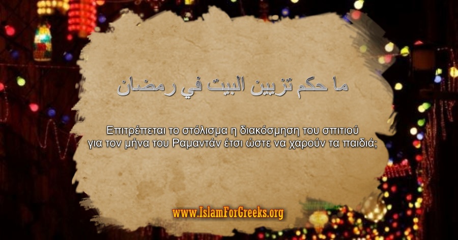 Μπορώ να στολίσω το σπίτι για τον μήνα του Ραμαζανίου έτσι ώστε να νιώθουν τα παιδιά την ιδιαιτερότητα του μήνα και να χαίρονται; Μπορώ στο τέλος του μήνα και στην γιορτή να αγοράσω δώρα και να τους τα δώσω; Εδώ στην Ελλάδα δεν νιώθουν τίποτα και ειδικά με τα Χριστούγεννα και το Πάσχα επηρεάζονται με το κλίμα που επικρατεί και δεν εχουν κατι αναλογο.