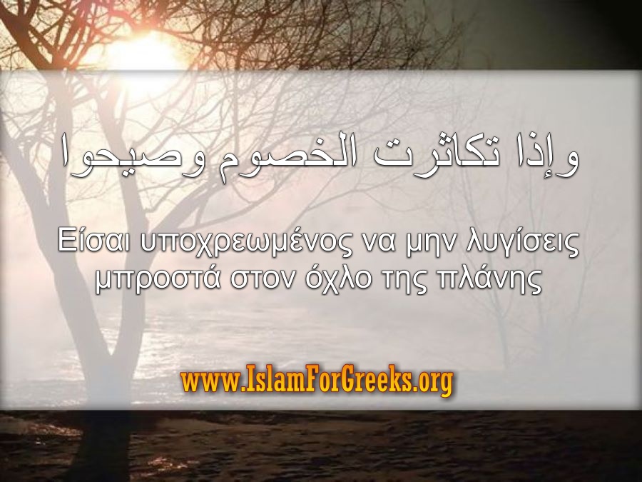 «Και σε περίπτωση που οι εχθροί/αντίπαλοι αυξηθούν και φωνάζουν (εναντίον της αλήθειας), τότε εσύ στάσου σταθερός, οι φωνές τους είναι σαν τον καπνό»