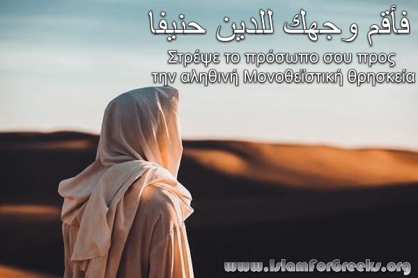 «Στρέψε το πρόσωπο σου προς την αληθινή Μονοθεϊστική θρησκεία, (μακριά από τις ψεύτικες). Είναι η φύτρα (φυσική κατάσταση Μονοθεϊστικής πίστης) με την οποία ο Αλλάχ έπλασε το ανθρώπινο γένος. Καμιά αλλαγή να μην υπάρξει στη δημιουργία και θρησκεία του Αλλάχ (Μονοθεϊσμός – Ισλάμ). Αυτή είναι η αληθινή Θρησκεία. Κι όμως οι πιο πολλοί από τους ανθρώπους δεν καταλαβαίνουν.
