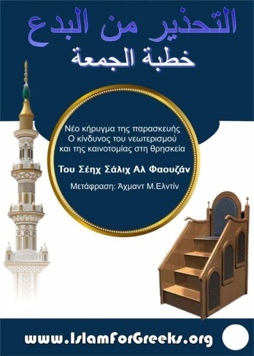 Στο πλαίσιο της προσπάθειας που καταβάλλουμε στο IslamForGreeks, να μεταφέρουμε όσο το δυνατόν περισσότερο τα κηρύγματα της Παρασκευής από διακεκριμένους λόγιους (Ουλεμά) του Ισλάμ, σας παρουσιάζουμε σήμερα μια ομιλία του Σέηχ Σάλιχ αλ Φαουζάν. Το θέμα της είναι η αίρεση, και πιο συγκεκριμένα ο νεωτερισμός ή η καινοτομία σε ζητήματα θρησκείας, είτε αυτά αφορούν τη λατρεία είτε τη θεολογία, και πώς αυτά καταδικάζονται στο Ισλάμ.