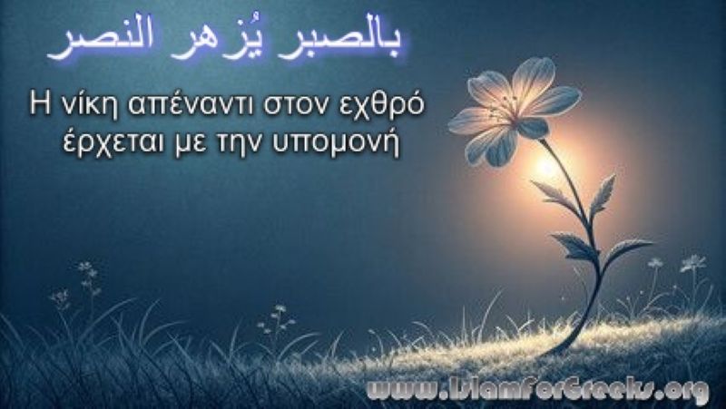 Ο Προφήτης صلى الله عليه وسلم είπε: «Η νίκη έρχεται με την υπομονή». {Μούσναντ 2803}